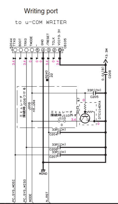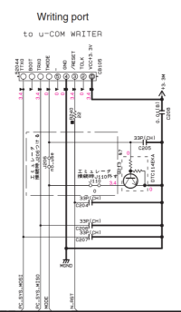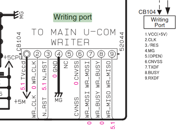 Yamaha devices use a so called “writing port”, a flat cable, e.g. for flash ucom via RS232-adapter. It is known for updating firmware over PC software (which we don't have).